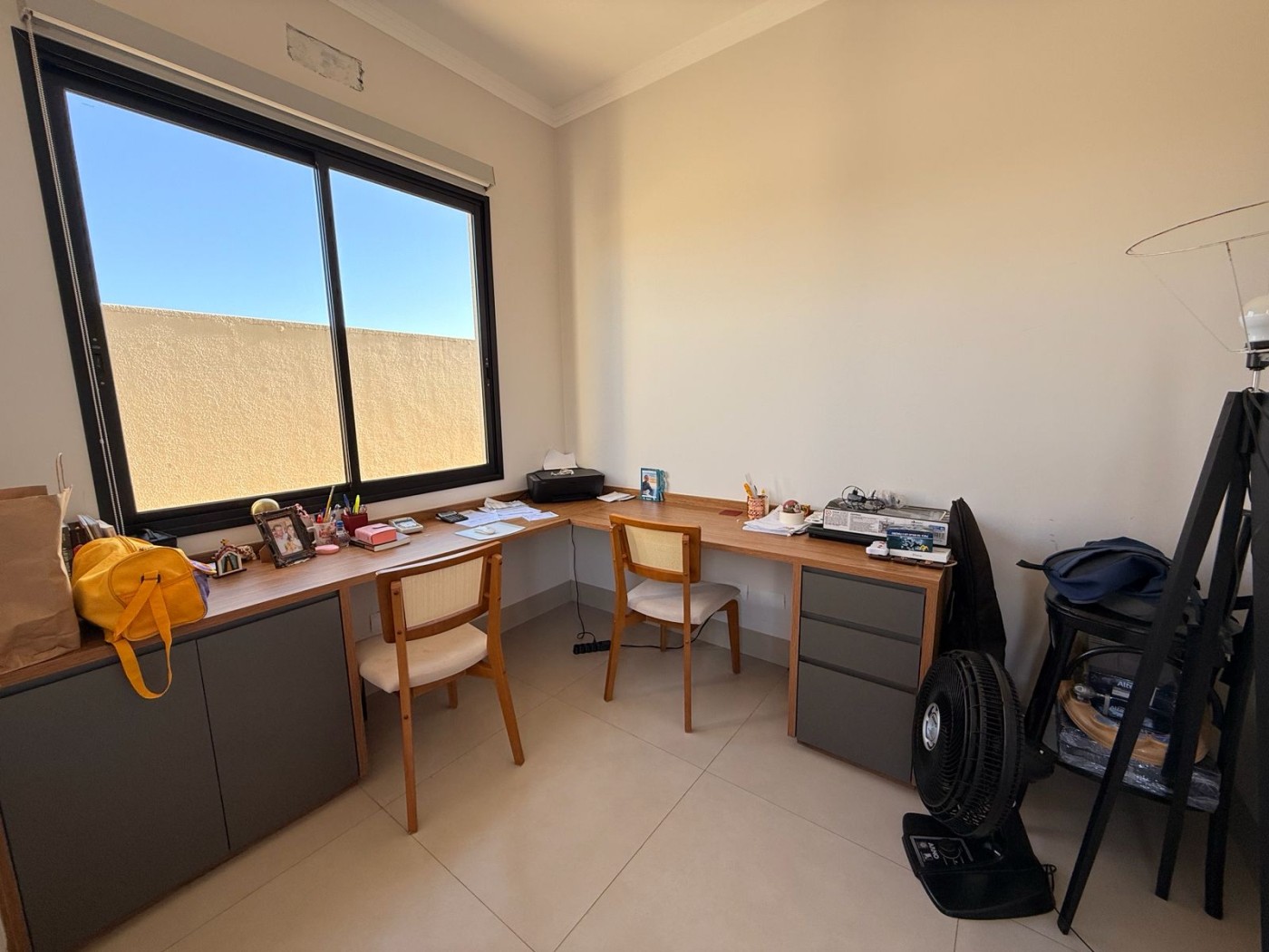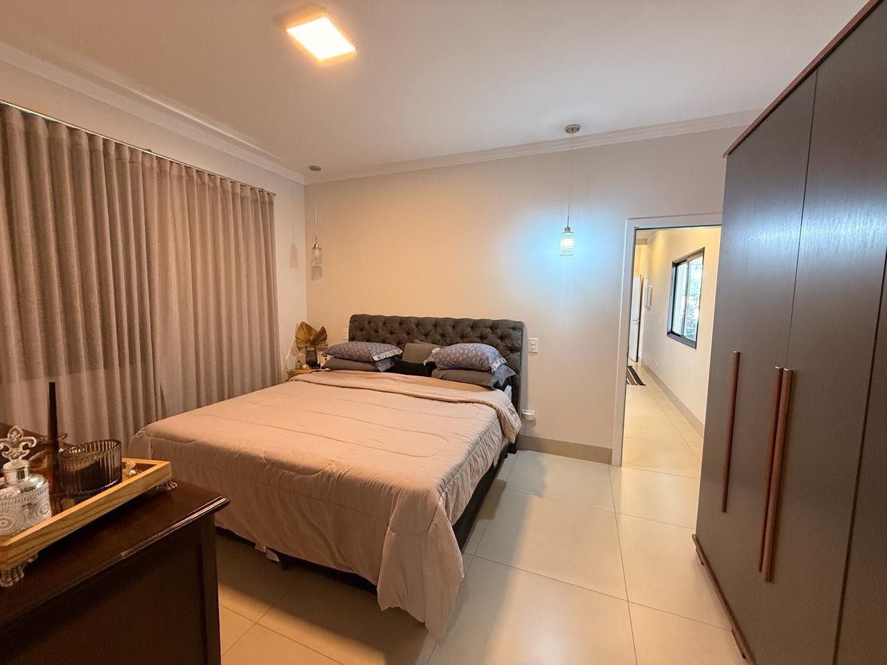 O imóvel ainda conta com um escritório com móveis planejados, um lavabo estrategicamente posicionado e um corredor com roupeiro embutido. São três suítes espaçosas, sendo uma delas com closet, garantindo conforto e privacidade para toda a família.
