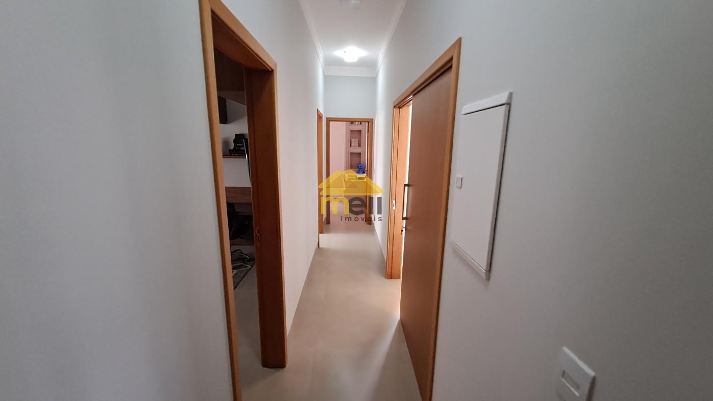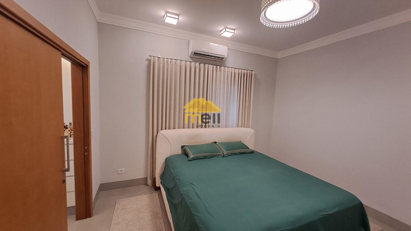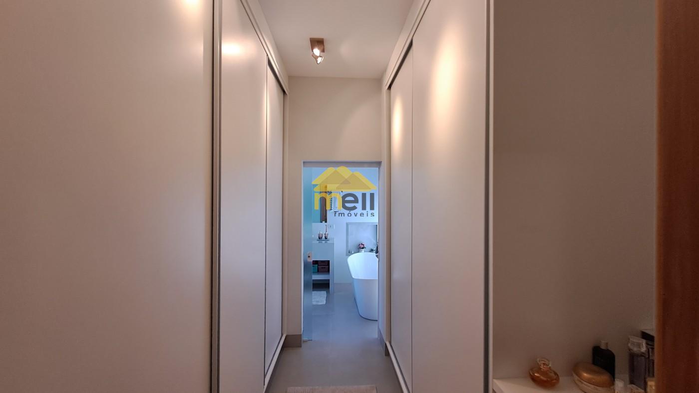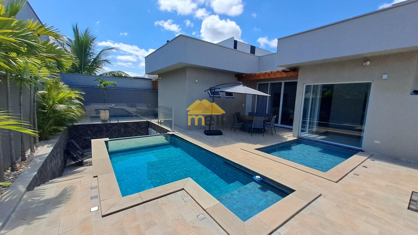 Uma casa 100% térrea, com 3 dormitórios sendo 1 suíte com closet e banheira, todos os dormitórios com armários; a suíte conta com uma ante-sala que pode ser de TV ou tornar escritório; ar condicionado em todos os comômos; sala de estar e jantar conjugada; cozinha equipada com cooktop, forno, armários e coifa, espaço para lava-louças; lavanderia com armários planejados e despensa, tudo no corpo da casa para facilitar o dia-dia. A porta de entrada é madeira maciça de mais ou menos 3,5 metros de altura; uma sala com pé direito duplo e o restante da casa com 3,5 metros. àrea goumet com pia, fogão cooktop, coifa; churrasqueira com gira gril e espetos embutidos; A piscina é um espetáculo a parte, tem aquecedor, hidro e vidro, pois, quem estiver na área de tomar sol consegue ver quem estiver dentro dela; O banheiro externo é completo e serve a área gourmet e a piscina; O piso interno é todo no porcelanato, bancadas e pias; Energia fotovoltáica para 1.100 kwh, para servir todo o imóvel. Boiler com capacidade para 500 litros de água quente para servir todas ás torneiras e chuveiros aquecidos, exceto torneira da lavanderia, O quintal é todo revestido em porcelanato; Acabamento em gesso em todo imóvel; A garagem abriga dois veículos grandes no coberto e mais dois no descoberto; O acabamento externo nas paredes e muros é tudo no crepe.