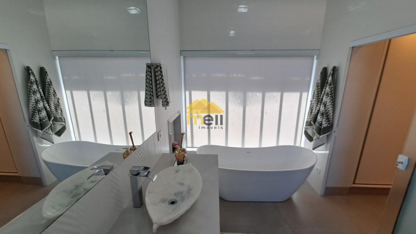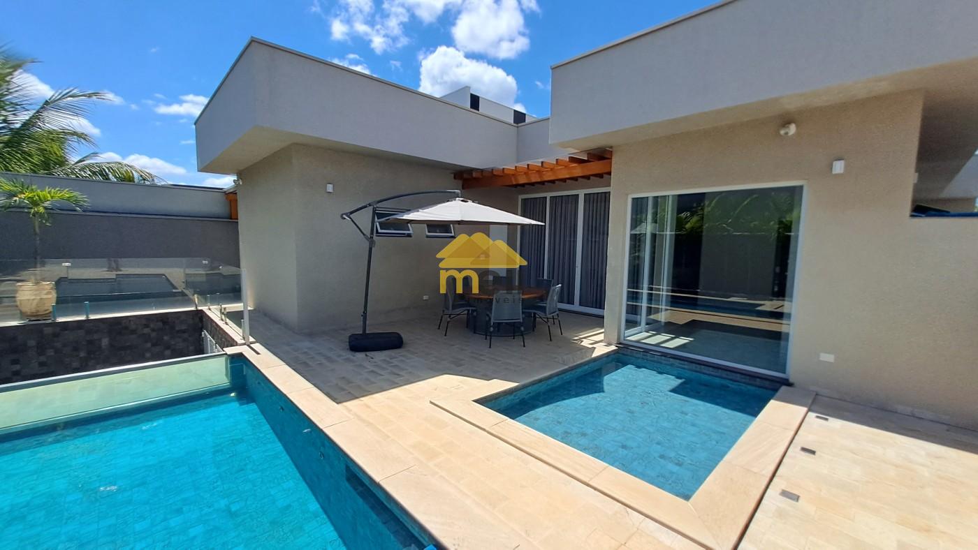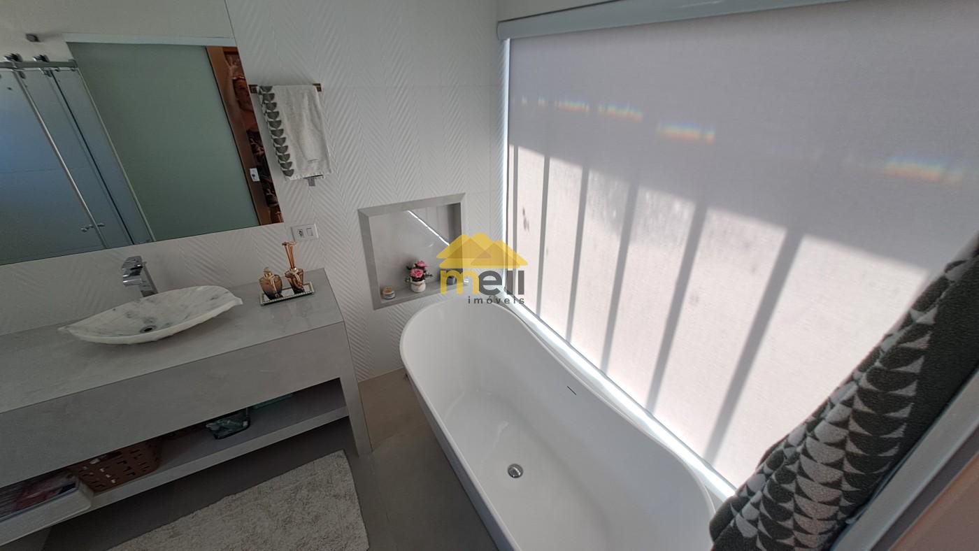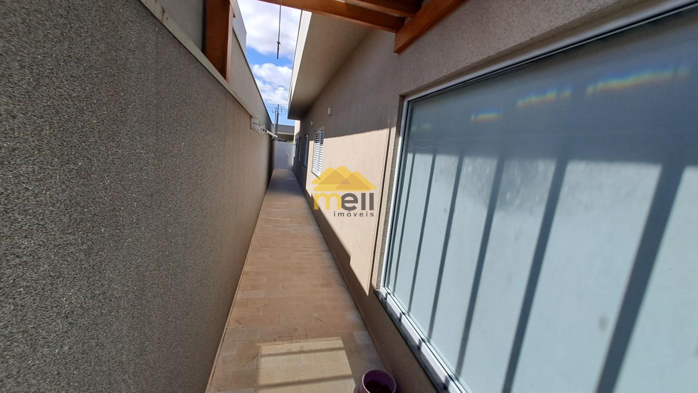 Uma casa 100% térrea, com 3 dormitórios sendo 1 suíte com closet e banheira, todos os dormitórios com armários; a suíte conta com uma ante-sala que pode ser de TV ou tornar escritório; ar condicionado em todos os comômos; sala de estar e jantar conjugada; cozinha equipada com cooktop, forno, armários e coifa, espaço para lava-louças; lavanderia com armários planejados e despensa, tudo no corpo da casa para facilitar o dia-dia. A porta de entrada é madeira maciça de mais ou menos 3,5 metros de altura; uma sala com pé direito duplo e o restante da casa com 3,5 metros. àrea goumet com pia, fogão cooktop, coifa; churrasqueira com gira gril e espetos embutidos; A piscina é um espetáculo a parte, tem aquecedor, hidro e vidro, pois, quem estiver na área de tomar sol consegue ver quem estiver dentro dela; O banheiro externo é completo e serve a área gourmet e a piscina; O piso interno é todo no porcelanato, bancadas e pias; Energia fotovoltáica para 1.100 kwh, para servir todo o imóvel. Boiler com capacidade para 500 litros de água quente para servir todas ás torneiras e chuveiros aquecidos, exceto torneira da lavanderia, O quintal é todo revestido em porcelanato; Acabamento em gesso em todo imóvel; A garagem abriga dois veículos grandes no coberto e mais dois no descoberto; O acabamento externo nas paredes e muros é tudo no crepe.