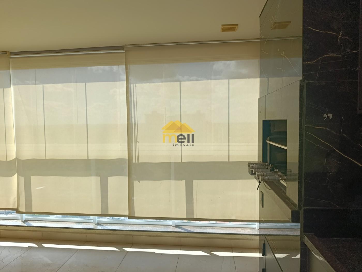 Ampla sacada com churrasqueira, fechada com vidros e persiana com opção de abrir e recolher a parte superior