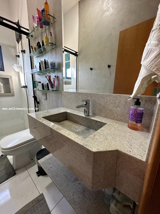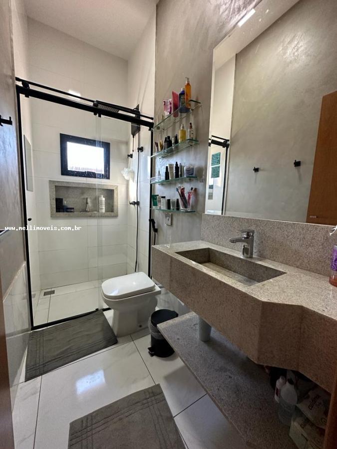 Casa térrea com 3 quartos sendo 1 suíte, sala 2 ambientes, cozinha planejada, banheiro social, lavanderia fechada, churrasqueira e ducha.