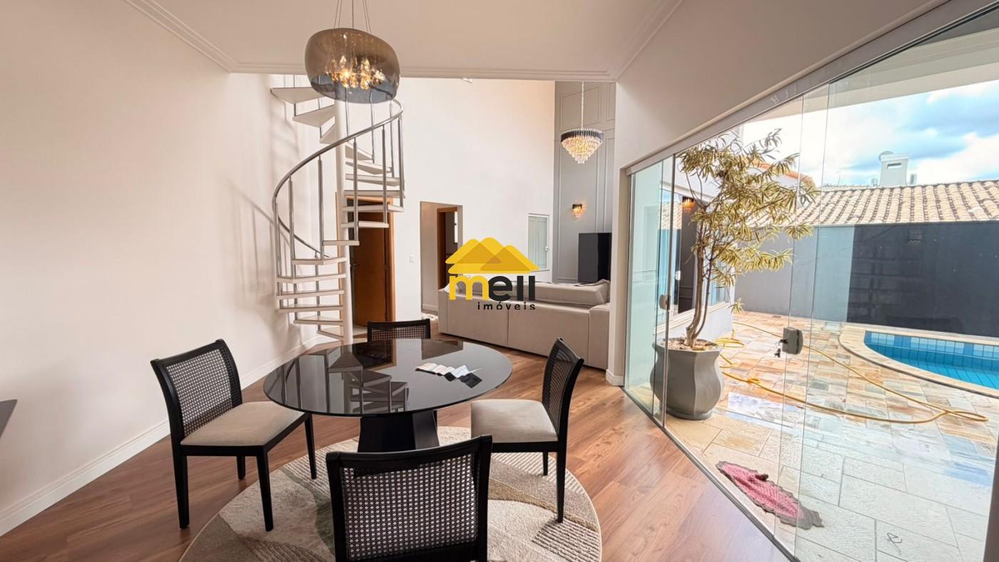 Casa em Condomínio no Condominio Parque Residencial Damha II, Presidente Prudente / SP. 3 quartos, sendo 1 suíte, escritório na parte superior, possui 4 banheiros, cozinha planejada, 2 vagas de garagem, 2 salas, móveis planejados, lavanderia coberta, piscina aquecida, ar condicionado.