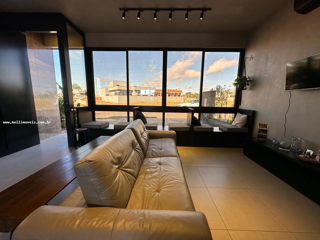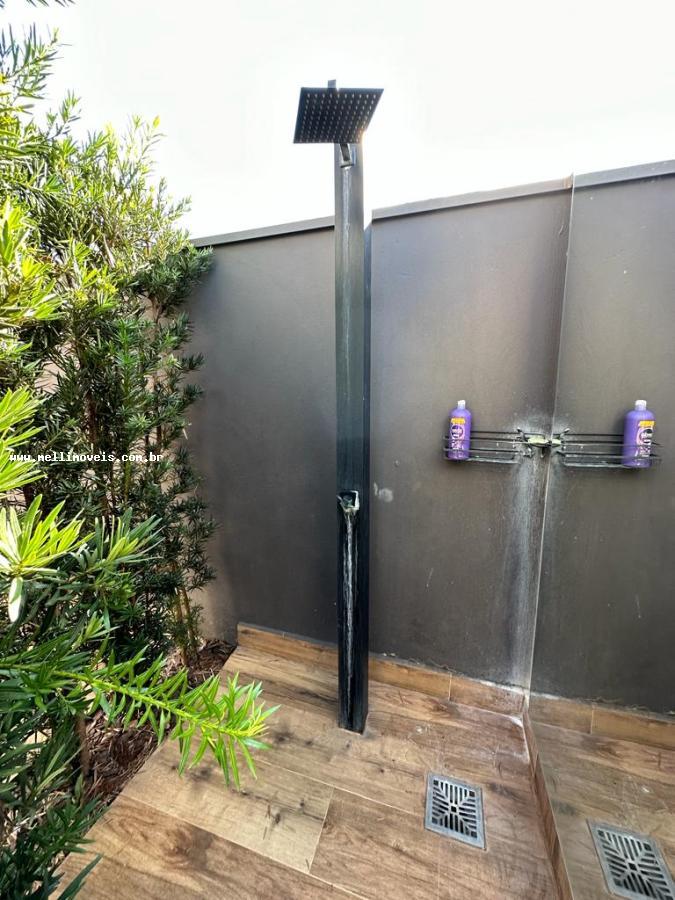Casa térrea com 3 quartos sendo 1 suíte, sala 2 ambientes, cozinha planejada, banheiro social, lavanderia fechada, churrasqueira e ducha.