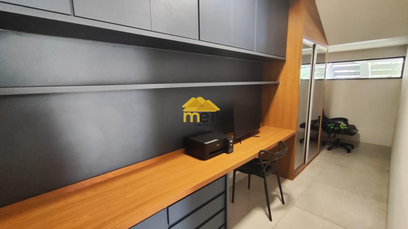 Com 4 dormitórios (sendo 4 suítes com ar-condicionado e móveis planejados), escritório com móveis planejados, sala de tv, sala de estar e jantar integrada a cozinha (com armários planejados, geladeira, forno e microondas), lavabo, landeria coberta, despensa, piscina aquecida e 4 vagas de garagem.