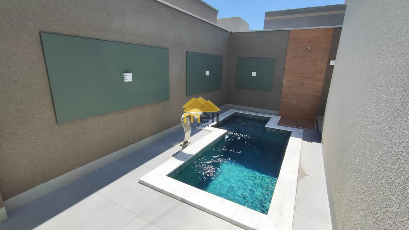 São 3 suítes (1 suíte com closet) com armários planejados e ar-condicionado, sala de tv, lavabo, área gourmet com com churrasqueira integrada a sala de jantar, cozinha com móveis planejados e despensa, lavanderia coberta com depósito, corredores amplos, piscina e 2 vagas de garagem.