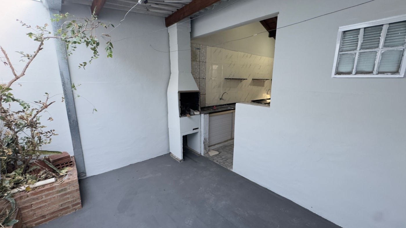 Fundo coberto com área de serviço e churrasqueira.