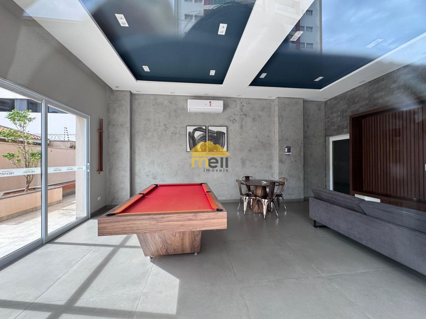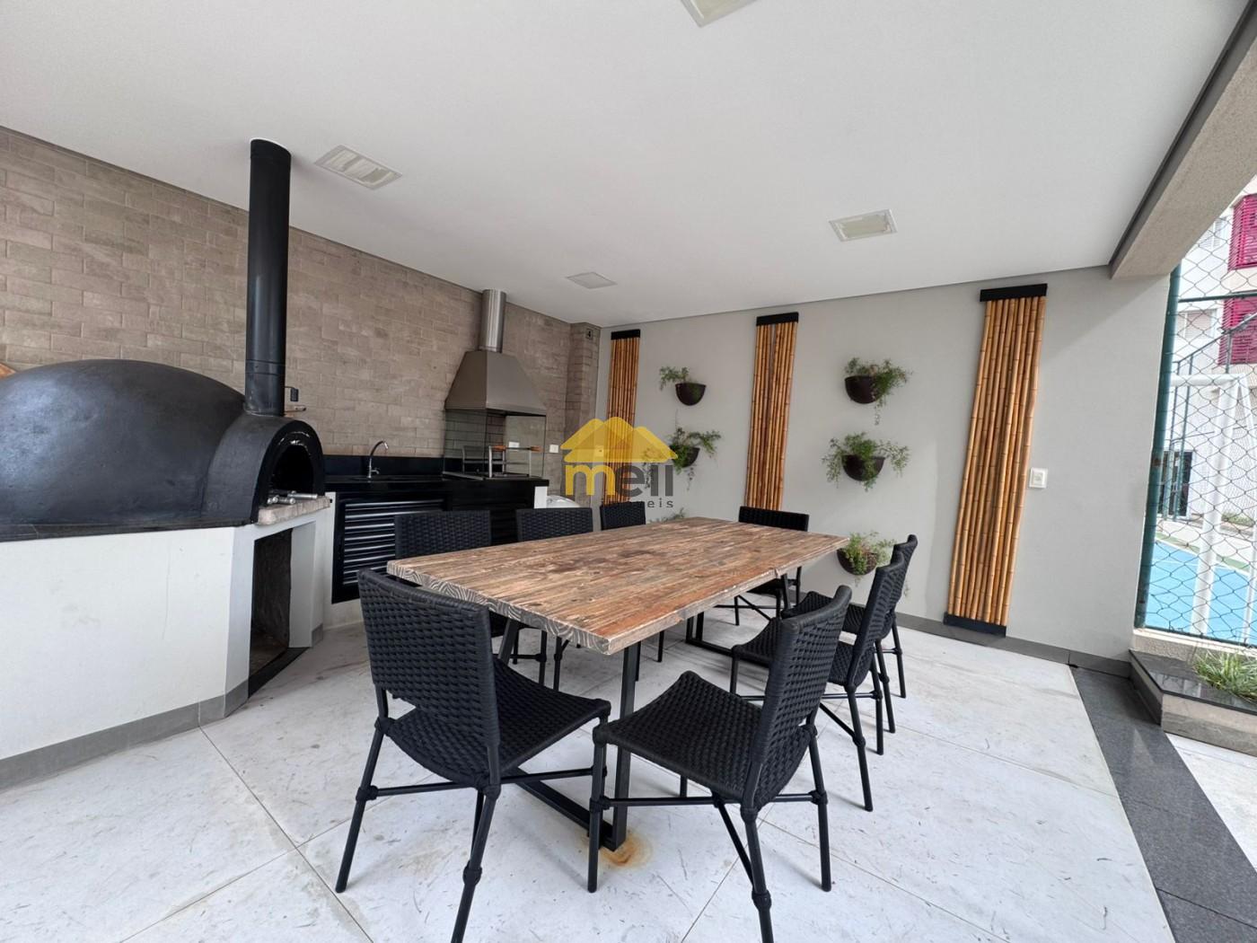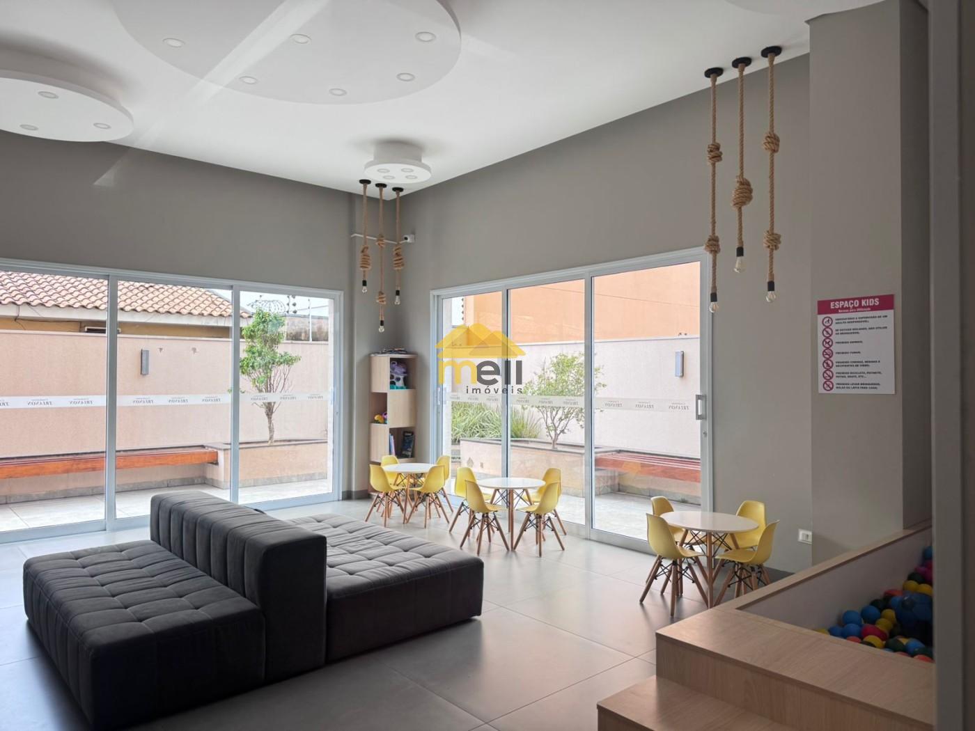 contém 2 dormitórios com armários planejados e ar condicionado, sendo 1 suíte, sala/copa conjugada com armários e painéis planejados , WC social com balcão, espelho e box blindex, cozinha, área serviço com churrasqueira e balcão e pia, 1 vaga na garagem e uma linda e completa área de lazer, com piscina infantil e adulto, hidrromassagem, quadra poliesportiva, playground, 4 quiosques de churrasqueiras, espaço de convivência e mais: no térreo de cada torre há 1 salão de festas, sala de jogos e academia!